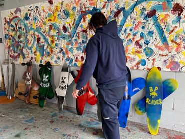 It feels like the real deal . The concept is backed by skateboarders, snowboarders, and wakeboarders to build muscle memory and core strength. You can ride it to simulate all types of park features. Simply align the two boards together, get going at whatever speed you feel comfortable with and pop out into a boardslide when you choose. The spring mechanism allows an authentic hopping motion. Available now at Feet First in Red Bank NJ or online ordering. Use the Contact form to ask any questions or order. Each board is custom handmade and painted! Purchase price will be $259 + shipping